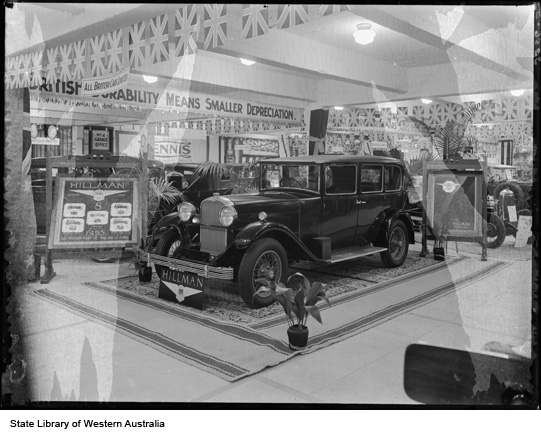 Title: Display of a Hillman Straight Eight for All British Cars Ltd, 870 Hay Street, Perth.